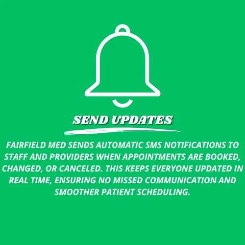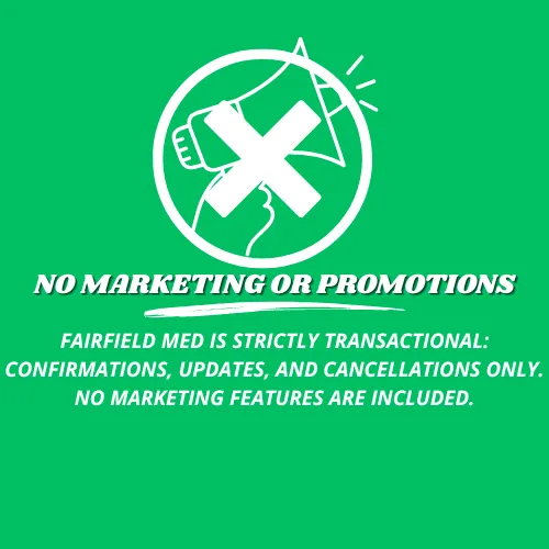 Never. Fairfield med only sends transactional notifications such as confirmations, reschedules, or cancellations related to patient appointments.
